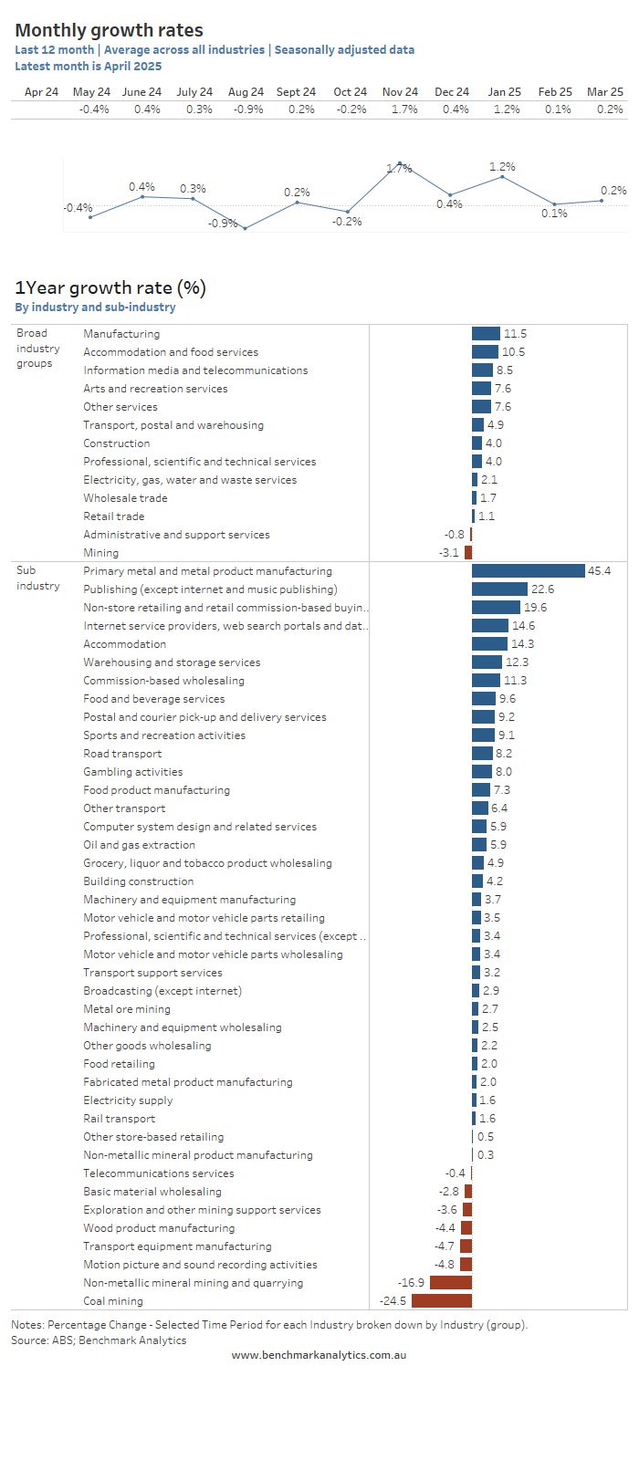 A detailed breakdown of one-year growth rates by industry and sub-industry is presented in the chart below.